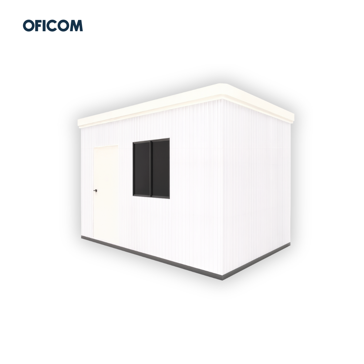 La caseta de 17.0 x 8.0 ft está fabricada con paneles tipo sándwich de acero galvanizado con núcleo de poliuretano de 1” de espesor, brindando excelente aislamiento térmico y acústico. Su estructura de acero pintado electrostáticamente ofrece gran resistencia y estabilidad. Incluye puerta metálica, ventana de aluminio corrediza, instalación eléctrica completa, piso vinílico antiderrapante y recubrimiento interior de alta durabilidad. Ideal para oficinas móviles, áreas de supervisión o puntos de atención en obra. Su diseño modular permite ampliaciones, personalización interior y fácil transporte.