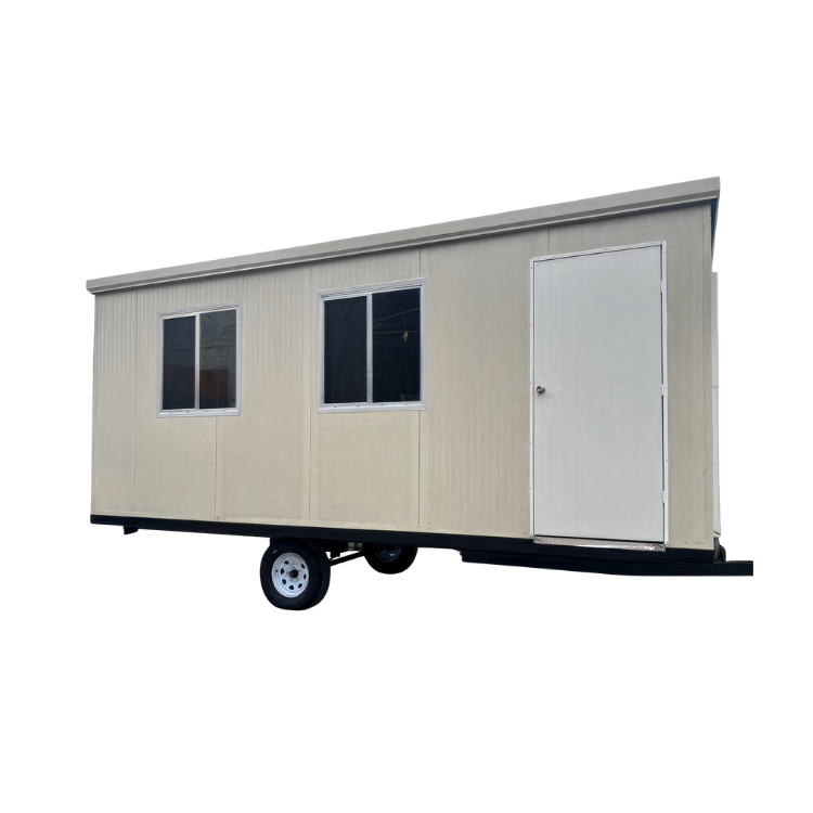 La caseta de 20.5 x 8.0 ft está fabricada con paneles tipo sándwich de acero galvanizado con núcleo de poliuretano de 1” de espesor, brindando excelente aislamiento térmico y acústico. Su estructura de acero pintado electrostáticamente ofrece gran resistencia y estabilidad. Incluye puerta metálica, ventana de aluminio corrediza, instalación eléctrica completa, piso vinílico antiderrapante y recubrimiento interior de alta durabilidad. Ideal para oficinas móviles, áreas de supervisión o puntos de atención en obra. Su diseño modular permite ampliaciones, personalización interior y fácil transporte.
