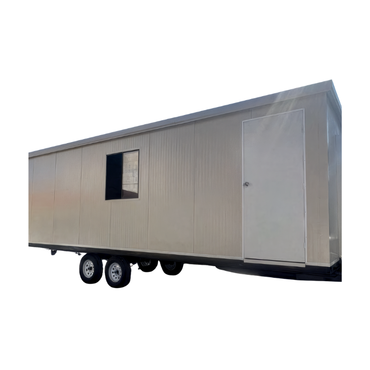 La caseta de 33.5 x 8.0 ft está fabricada con paneles tipo sándwich de acero galvanizado con núcleo de poliuretano de 1” de espesor, brindando excelente aislamiento térmico y acústico. Su estructura de acero pintado electrostáticamente ofrece gran resistencia y estabilidad. Incluye puerta metálica, ventana de aluminio corrediza, instalación eléctrica completa, piso vinílico antiderrapante y recubrimiento interior de alta durabilidad. Ideal para oficinas móviles, áreas de supervisión o puntos de atención en obra. Su diseño modular permite ampliaciones, personalización interior y fácil transporte.
